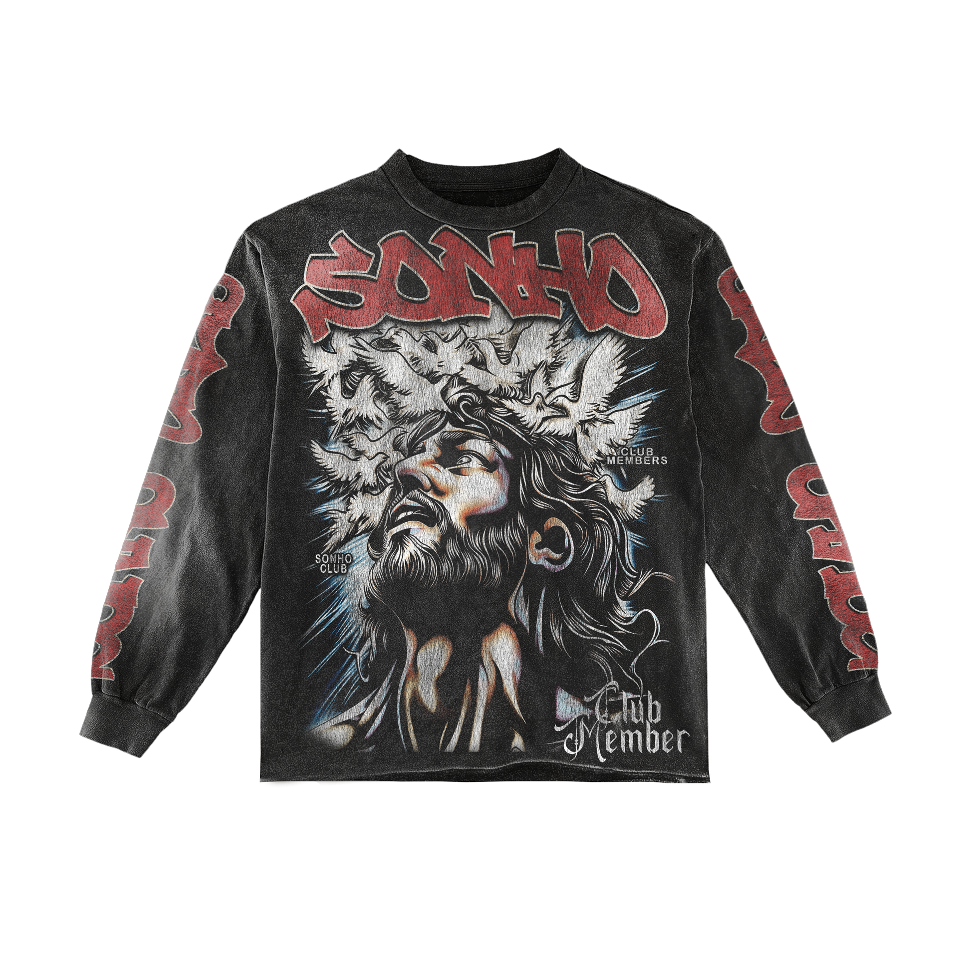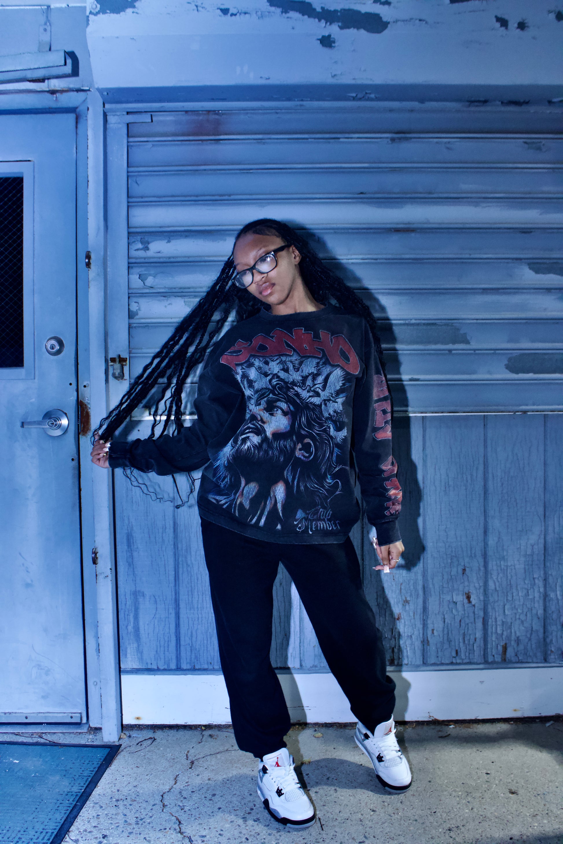 This heavy weight French Terry cotton shirt, featuring oversized graphics. Keep warm and stylish while making a statement with this unique piece. John 3:16 "For God so loved the world that he gave his one and only Son, that whoever believes in him shall not perish but have eternal life."